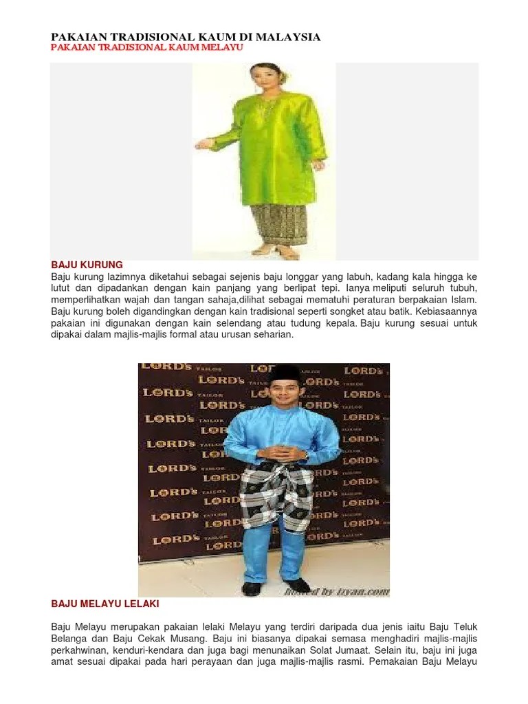 Baju melayu terbahagi kepada dua bahagian iaitu baju (kemeja . Baju melayu kini dikenali dengan pakaian tradisional lelaki yang berbaju lengan panjang, seluar panjang dan hiasan diri iaitu songkok dan . Jom kita tengok baju tradisional melayu . 1.1 pakaian tradisional kaum lelaki melayu 1.