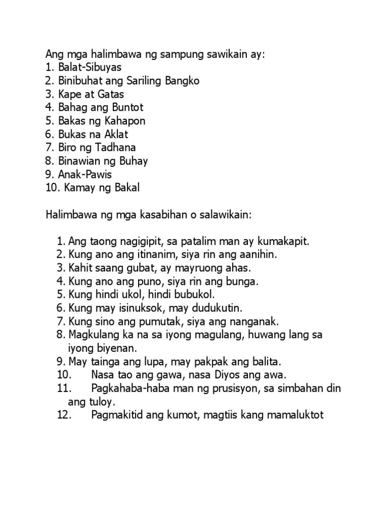 Ano Ang Impormal Na Wika - Ang Mga Halimbawa Ng Sampung Sawikain Ay